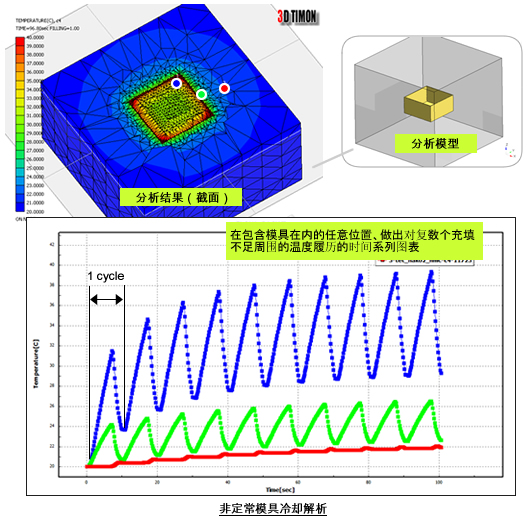 - 在包含模具在内的任意位置、做出对复数个充填不足周围的温度履历的时间系列图表
